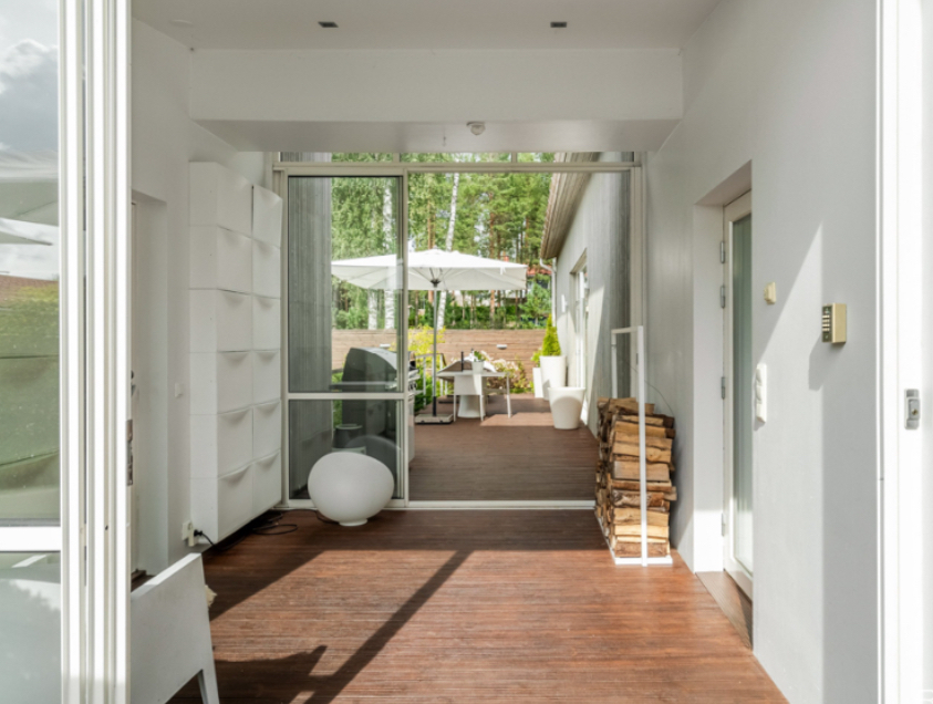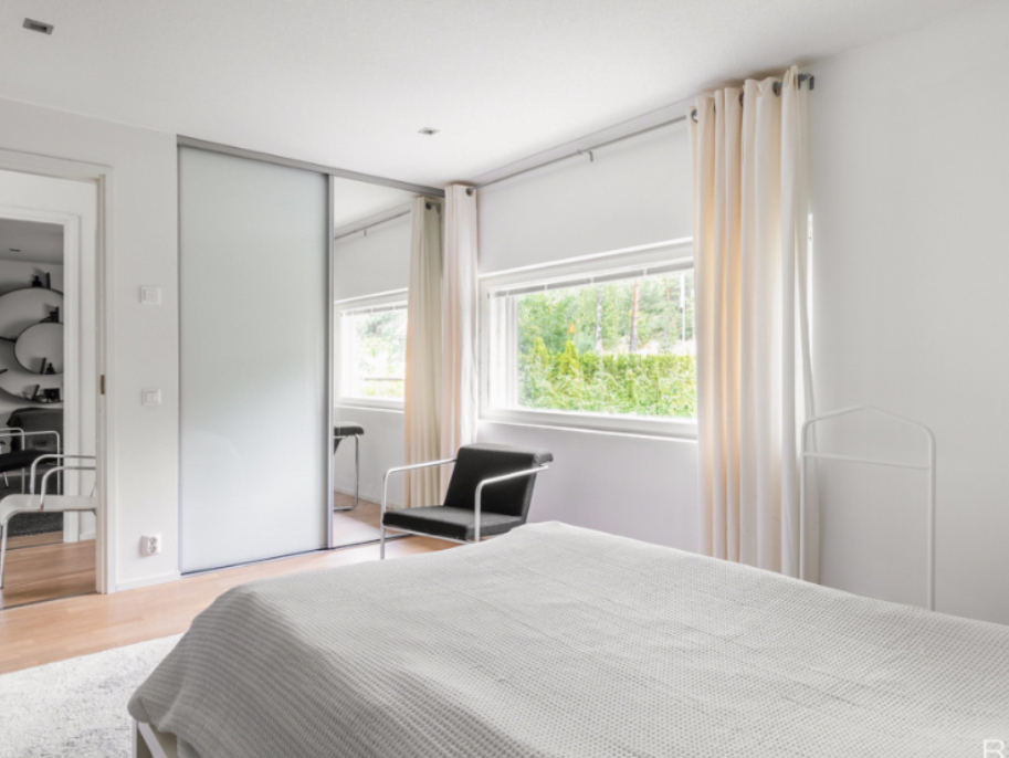 The property is located at Rantanitynpolku 8, 02580 Siuntio, in the Störsvik area. It is a detached house, completed in 2018, and designed by architect Juha-Paavo Mikkonen. The design reflects a carefully planned residential structure where functionality, privacy, and everyday living have been considered in detail.