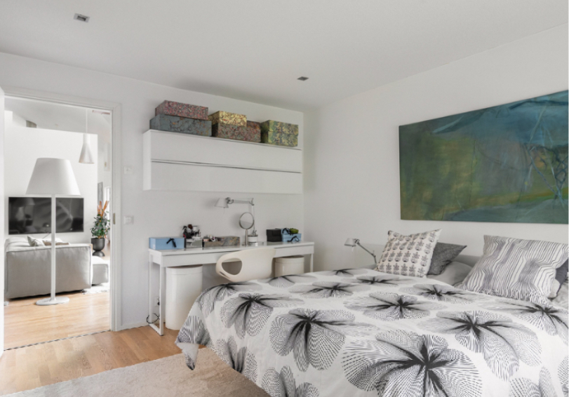 At the opposite end of the house, the bedrooms and the library/living room are located together. This area is intentionally separated from the main living spaces to provide privacy and quiet. The rooms are arranged so that they are not directly exposed to the busier parts of the house, which supports rest, work, or reading without interruption.